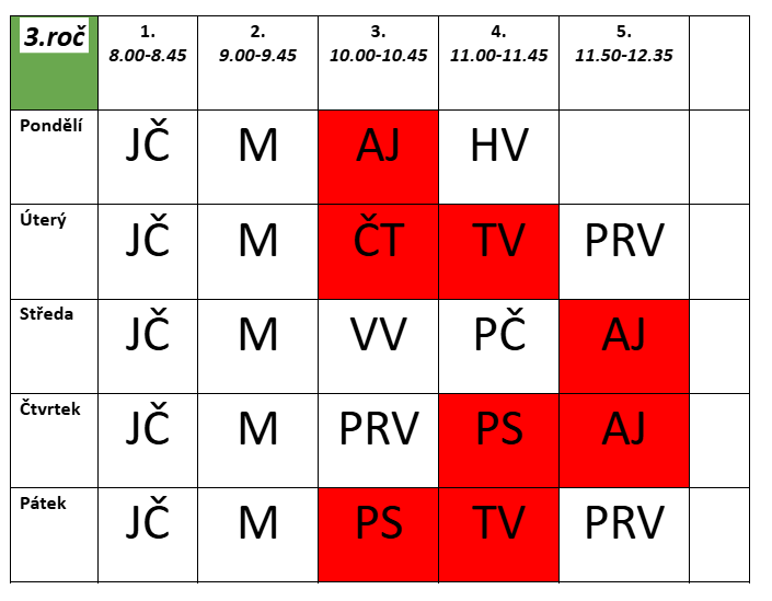 Rozvrh hodin I. pololetí 2025/2026
