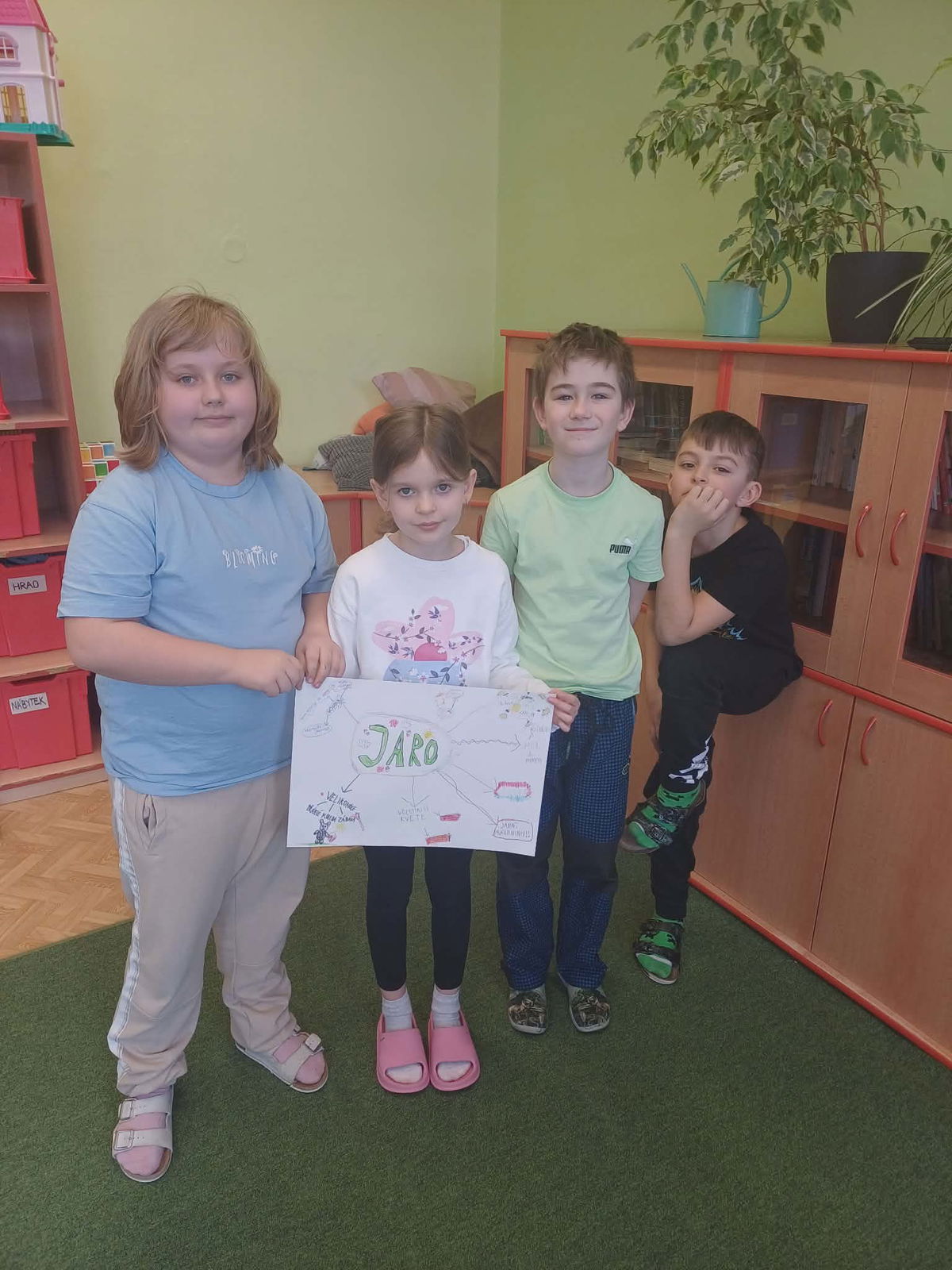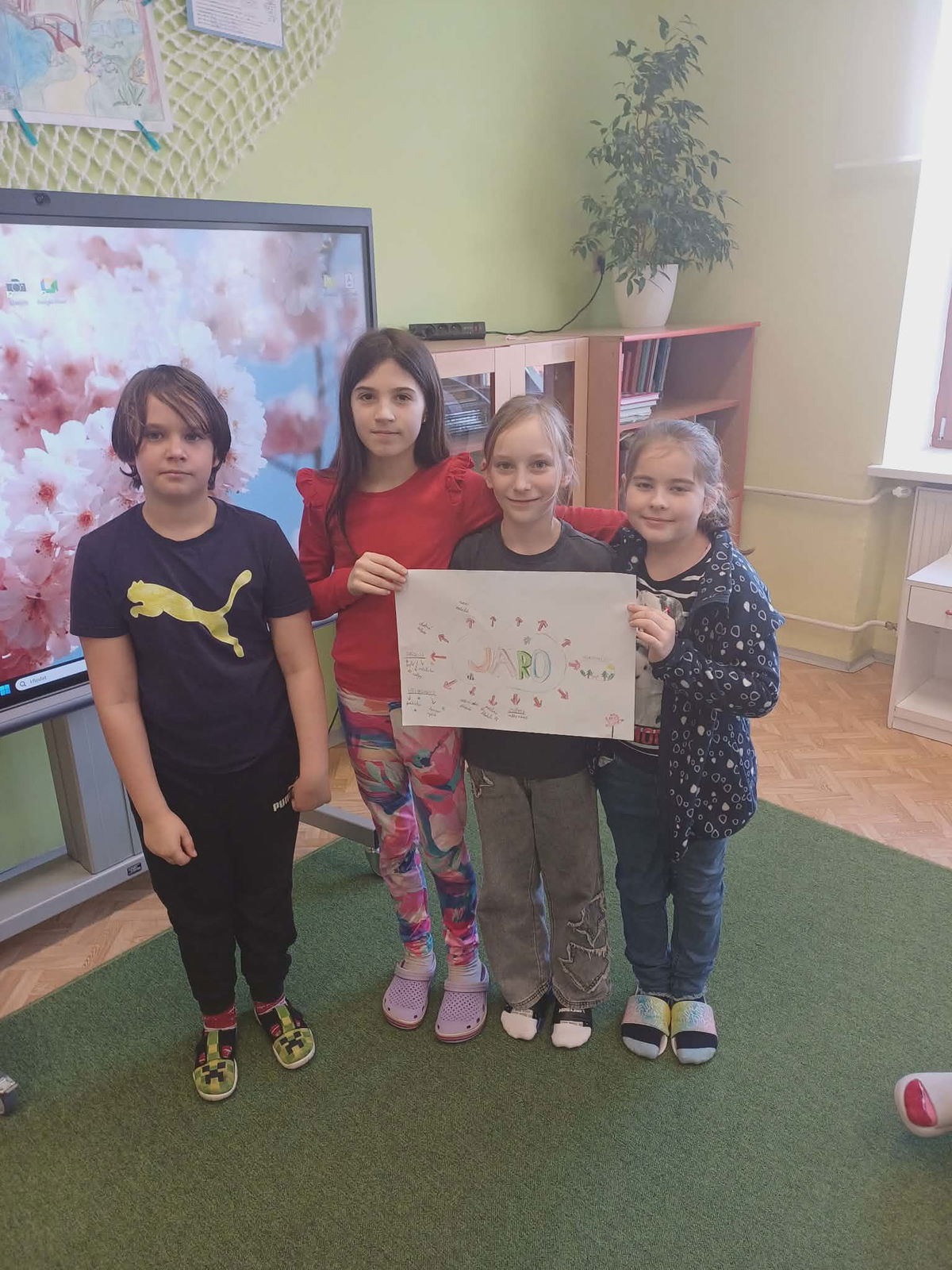 Než vyrazíme na prázdniny, rozhodli jsme se přivolat jaro. Proběhla práce ve skupinách, tvorba myšlenkových map a výroba kooperativního obrázku. Na jednotlivých stanovištích jsme si ověřili naše znalosti z matematiky, českého jazyka, prvouky a přírodovědy. Jaro jsme alespoň pro dnešní den přivolali písničkou a sluníčko se na nás za odměnu smálo za okny.